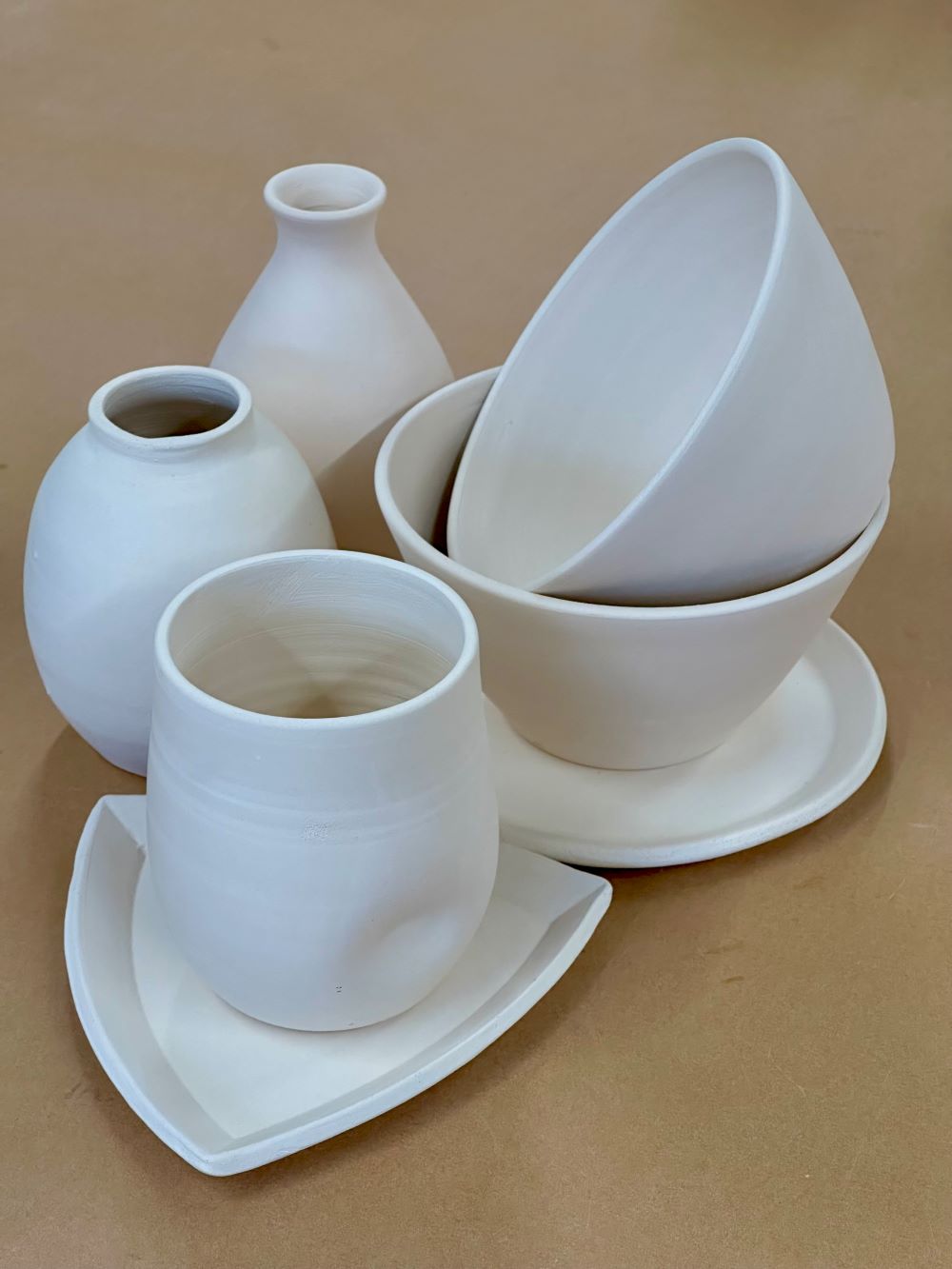 Each piece is handmade and ready for painting. You can sit in our café space or take your creation next door to Brewing August* while you paint.